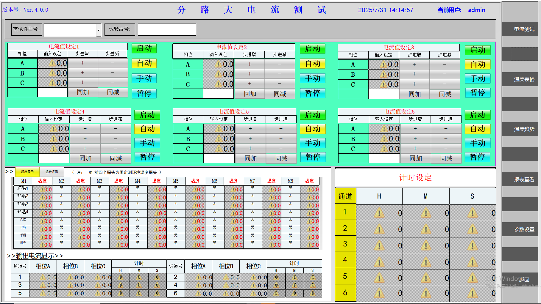根据国标对全自动温升大电流系统的功能要求:在输出满载三相AC500A做温升试验,8小时以上运行: